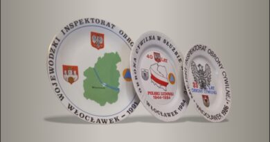 „Społeczeństwo miasta Włocławka życzy towarzyszom delegatom na III Zjazd PZPR w Warszawie pomyślnych obrad oraz zapewnia pełne poparcie dla podjętych przez nich uchwał – Włocławek, 10 . III . 1959”, taki tekst widnieje na pamiątkowym talerzu wykonanym przez J. M. Sowińskiego. Poza tekstem wymienione są także włocławskie zakłady, które istniały w tym czasie: Zakłady Włókien Sztucznych, Fajans Włocławek 1880, Zakłady Wytwórcze Społem, Stopień Wodny – Elektrownia (powołano spółkę), Fabryka Farb Lakierów, Zakłady Maszyn Rolniczych, Zakłady Przetwórcze Owoców Warzyw, Kujawska Fabryka Manometrów, Zakłady Celulozy i Papieru, Zakłady Kawy Zbożowej, Chłodnia Składowa, Zakłady Lin i Drutu. Ciekawostką jest wymieniony wśród zakładów włocławskich „Stopień Wodny – Elektrownia” budowany w latach 1962-1970. Sygnatura: Zakłady Fajansu Rewolucji 1905 – Włocławek.