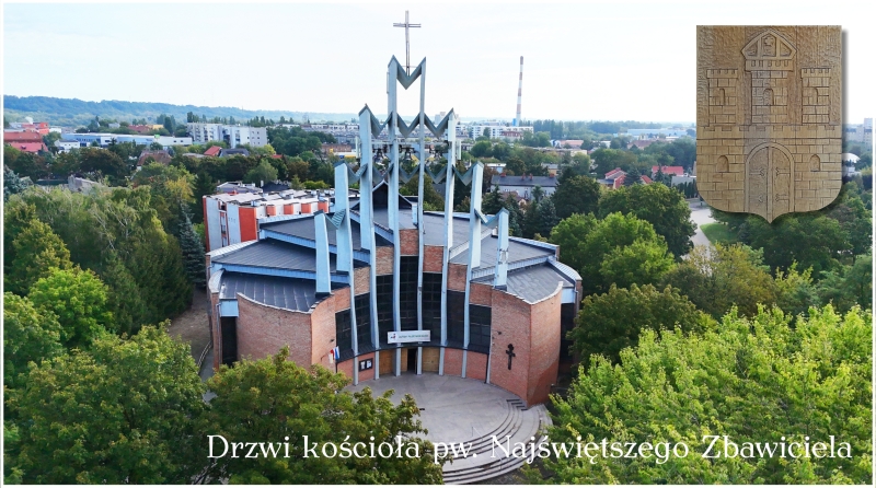 Czytaj więcejHerb Włocławka na drzwiach prawych świątyni parafii pw. Najświętszego Zbawiciela przy ul. W. S. Reymonta 11 we Włocławku. Płyty z